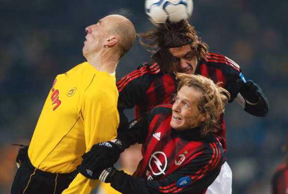 DORTMUND, GERMANY - DECEMBER 11: CHAMPIONS LEAGUE 02/03 Dortmund; BORUSSIA DORTMUND - AC MAILAND 0:1; Jan KOLLER/Dortmund, Paolo MALDINI und Massimo AMBROSINI/Mailand (Photo by Sandra Behne/Bongarts/Getty Images)