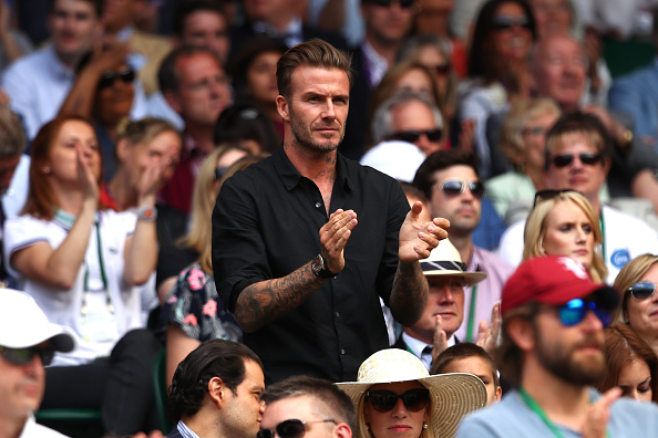 LONDON, ENGLAND - JULY 06: David Beckham looks on from centre court on day nine of the Wimbledon Lawn Tennis Championships at the All England Lawn Tennis and Croquet Club on July 6, 2016 in London, England. (Photo by Clive Brunskill/Getty Images)