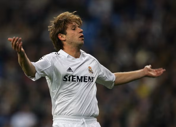 MADRID, SPAIN - JANUARY 21: Antonio Cassano of Real Madrid urges on the fans during a Primera Liga match between Real Madrid and Cadiz at the Santiago Bernabeu stadium on January 21, 2006 in Madrid, Spain. (Photo by Denis Doyle/Getty Images)
