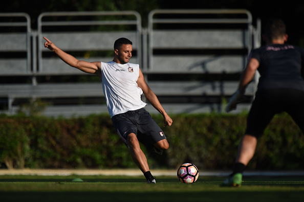 PALERMO, ITALY - OCTOBER 05: Ouasim Bouy in action during a US Citta' di Palermo training session at Carmelo Onorato training center on October 5, 2016 in Palermo, Italy. (Photo by Tullio M. Puglia/Getty Images)
