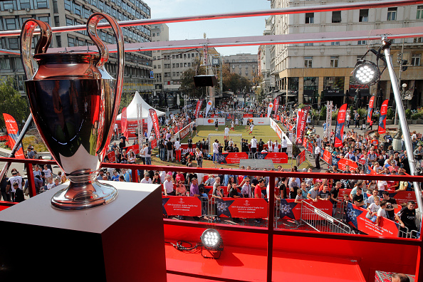 BELGRADE, SERBIA - OCTOBER 1: Fans wait in que to take a picture with the UEFA Champions League Trophy at the UEFA Champions League Trophy Tour - by UniCredit public event at Republic square on October 1, 2016 in Belgrade, Serbia. (Photo by Srdjan Stevanovic/Getty Images)