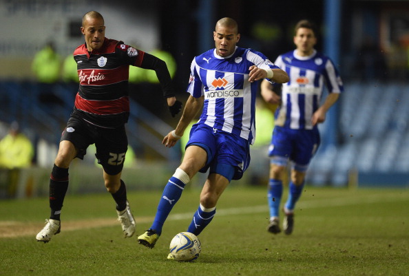 SHEFFIELD, ENGLAND - JANUARY 11: Bobby Zamora of QPR in action with Oguchi Onyewu of Sheffield Wednesday during the Sky Bet Championship match between Sheffield Wednesday and Leeds United at Hillsborough Stadium on January 11, 2014 in Sheffield, England, (Photo by Michael Regan/Getty Images)