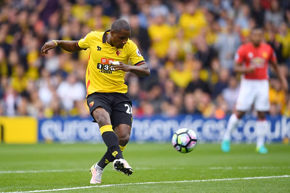 WATFORD, ENGLAND - SEPTEMBER 18: Odion Ighalo of Watford misses a chance to score for Watford during the Premier League match between Watford and Manchester United at Vicarage Road on September 18, 2016 in Watford, England. (Photo by Laurence Griffiths/Getty Images)