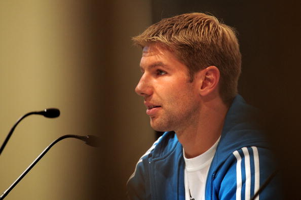 COLOGNE, GERMANY - SEPTEMBER 07: Thomas Hitzlsperger of Germany looks on during the DFB press conference at the Guerzenich on September 7, 2009 in Cologne, Germany. (Photo by Stuart Franklin/Bongarts/Getty Images)