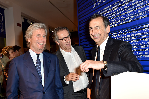 MILAN, ITALY - APRIL 12: (L-R) Claudio Luti, guest and Giuseppe Sala attend Kartell+Lapo. It's A Wrap! Party on April 12, 2016 in Milan, Italy. (Photo by Valerio Pennicino/Getty Images for Kartell)