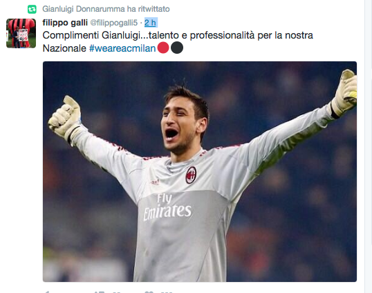 MILANO – Donnarumma realizza il suo sogno e si conquista la nazionale. Sui social è un continuo incensarlo tra post e foto che lo ritraggono. L’ex difensore del Milan Filippo Galli è uno tra questi: