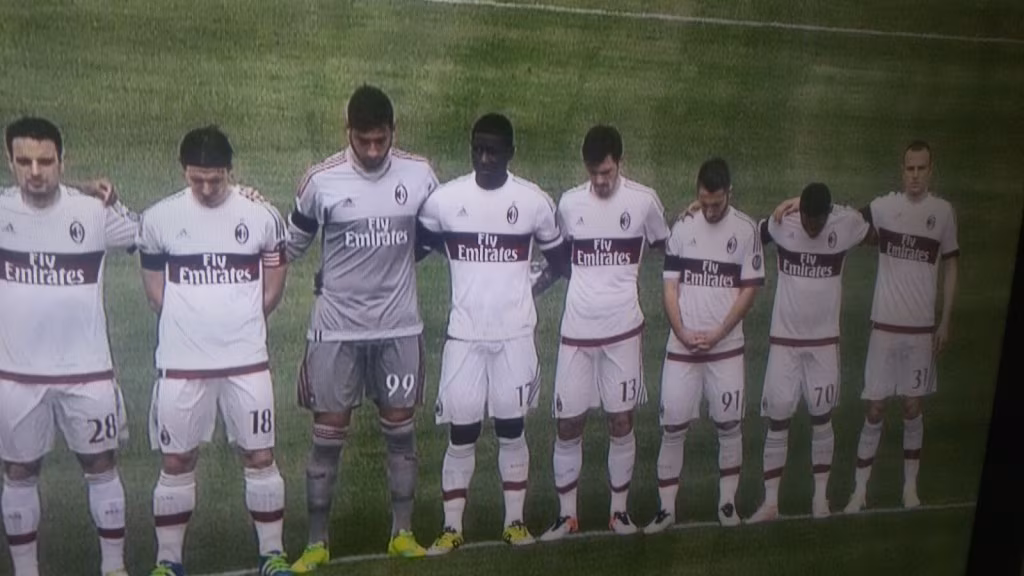 MILANO – I rossoneri nel minuto di silenzio per Cesare Maldini