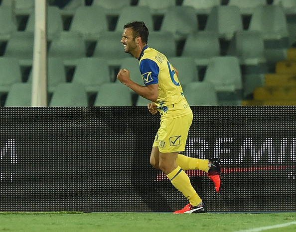 PESCARA, ITALY - OCTOBER 01: Riccardo Meggiorini of AC Chievo Verona celebrates after scoring the opening goal during the Serie A match between Pescara Calcio and AC Chievo Verona at Adriatico Stadium on October 1, 2016 in Pescara, Italy. (Photo by Giuseppe Bellini/Getty Images)