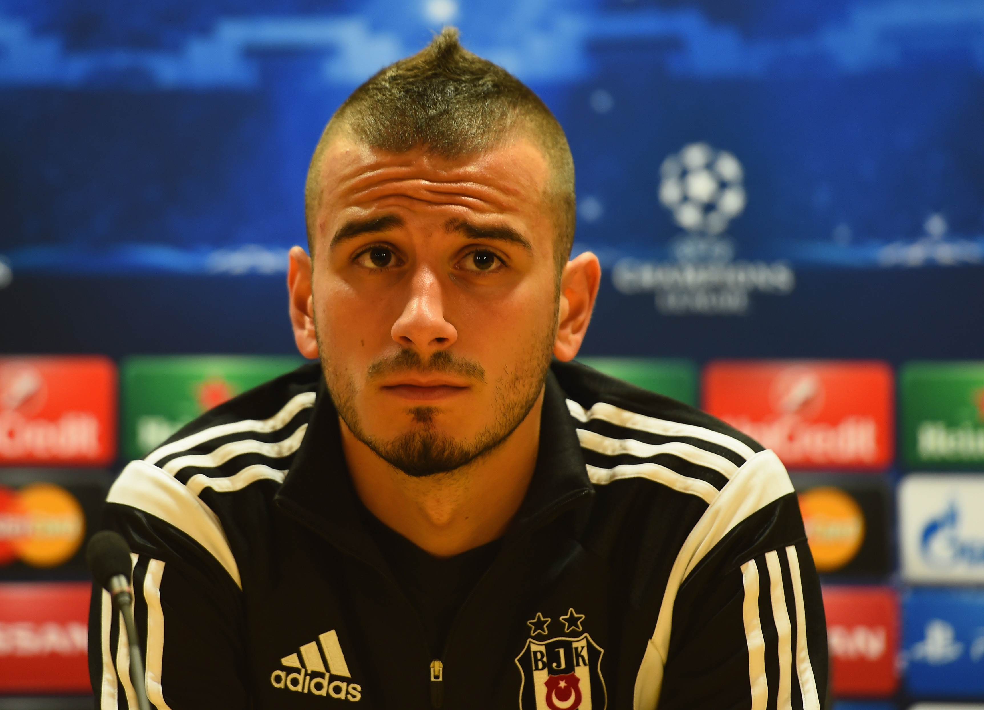LONDON, ENGLAND - AUGUST 26: Oguzhan Ozyakup of Besiktas talks to the media during a press conference at Emirates Stadium on August 26, 2014 in London, United Kingdom. (Photo by Shaun Botterill/Getty Images)