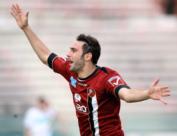 REGGIO CALABRIA, ITALY - MARCH 24: Gianmario Comi of Reggina celebrates after scoring his tema's second goal during the Serie B match between Reggina Calcio and SS Juve Stabia at Stadio Oreste Granillo on March 24, 2013 in Reggio Calabria, Italy. (Photo by Maurizio Lagana/Getty Images)