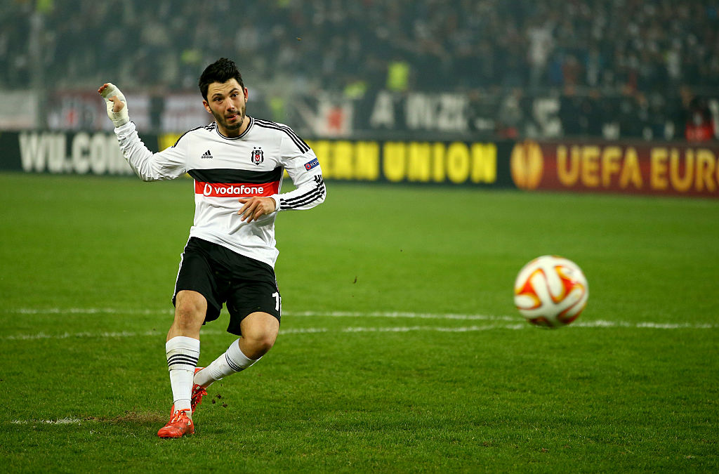 ISTANBUL, TURKEY - FEBRUARY 26: Tolgay Arslan of Besiktas scores his penalty in the shoot out during the 2nd leg of the UEFA Europa League Round of 32 match between Besiktas and Liverpool at the Ataturk Olympic Stadium on February 26, 2015 in Istanbul, Turkey. (Photo by Richard Heathcote/Getty Images)