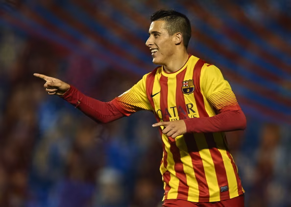 VALENCIA, SPAIN - JANUARY 22: Cristian Tello of Barcelona celebrates after scoring during the Copa del Rey Quarter Final First Leg match between Levante UD and FC Barcelona at Ciutat de Valencia on January 22, 2014 in Valencia, Spain. (Photo by Manuel Queimadelos Alonso/Getty Images)