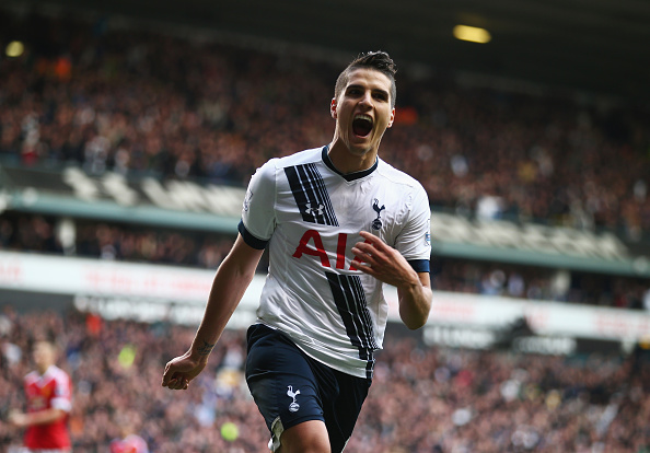 LONDON, UNITED KINGDOM - APRIL 10: Erik Lamela of Tottenham Hotspur celebrates as he scores their third goal during the Barclays Premier League match between Tottenham Hotspur and Manchester United at White Hart Lane on April 10, 2016 in London, England. (Photo by Clive Rose/Getty Images)