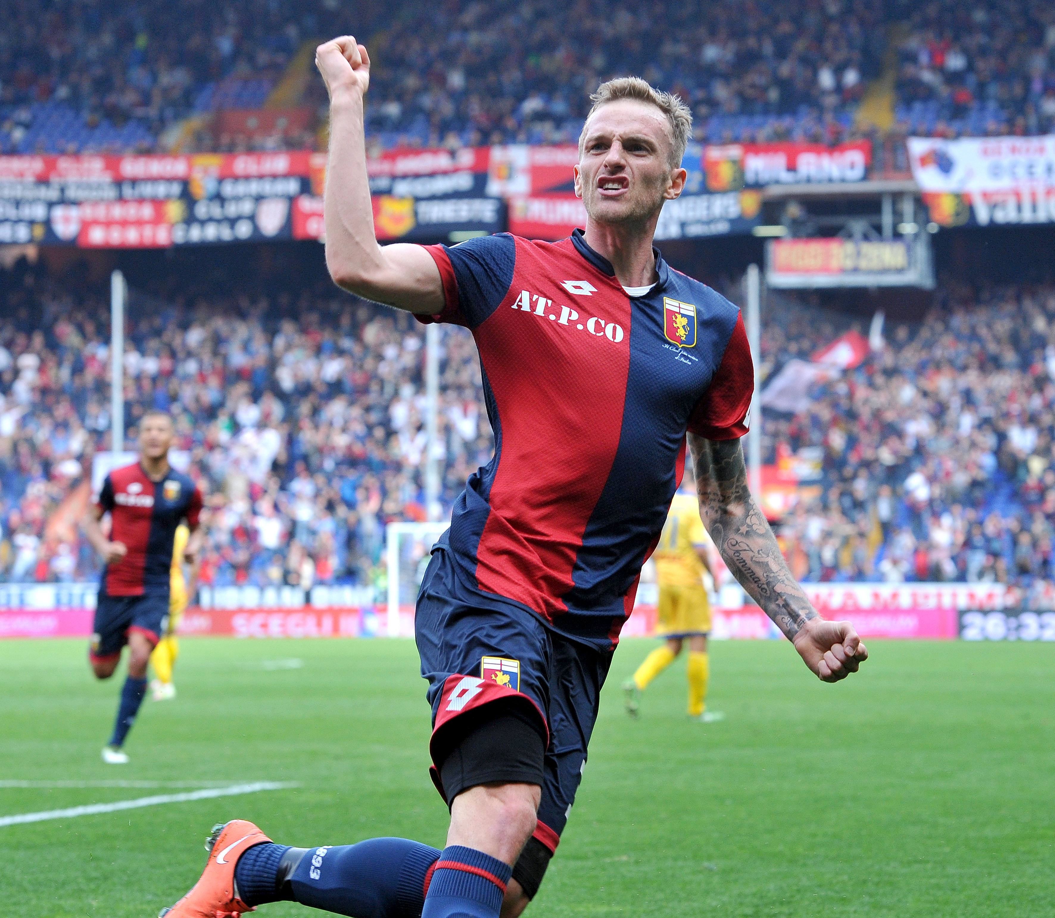 Luca Rigoni of Genoa celebrates after scoring a goal during the Serie A match between Genoa CFC and Frosinone Calcio at Stadio Luigi Ferraris on April 3, 2016 in Genoa, Italy