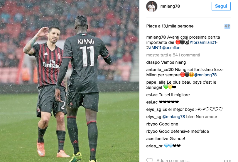 L’amichevole contro il Bournemouth ha dato qualche risposta in più a mister Montella. Niang sembra essere sicuramente il giocatore più in forma. L’attaccante francese suona la carica sul proprio profilo Instagram: