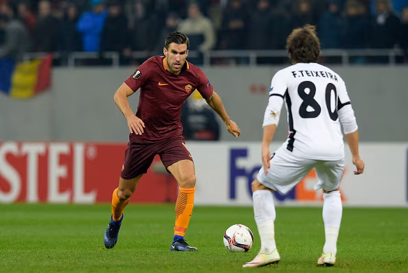 BUCHAREST, ROMANIA - DECEMBER 08: AS Roma player Kevin Strootman (L) in action during the UEFA Europa League match between FC Astra Giurgiu and AS Roma at on December 8, 2016 in Bucharest, Romania. (Photo by Luciano Rossi/AS Roma via Getty Images)