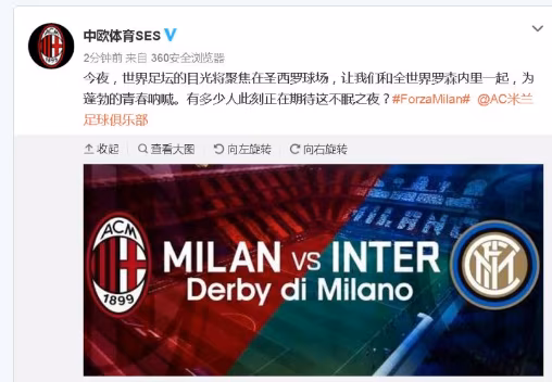 MILANO – Anche la cordata cinese, Sino Europe, ha voluto mandare il proprio messaggio in vista del derby di questa sera tramite i propri profili social: “#SES: stasera i tifosi di #acmilan di tutto il mondo sono più uniti che mai. #ForzaMilan anche dalla Cina!”. Derby che indubbiamente sta diventando sempre più internazionale sia dal lato rossonero che da quello nerazzurro. Intanto un ex Inter rivela la scioccante verità…