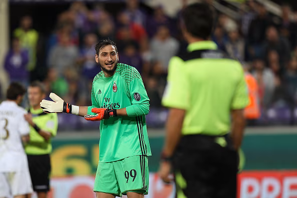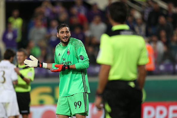 FLORENCE, ITALY - SEPTEMBER 25: Gianluigi Donnarumma of AC Milan reacts during the Serie A match between ACF Fiorentina and AC Milan at Stadio Artemio Franchi on September 25, 2016 in Florence, Italy. (Photo by Gabriele Maltinti/Getty Images)