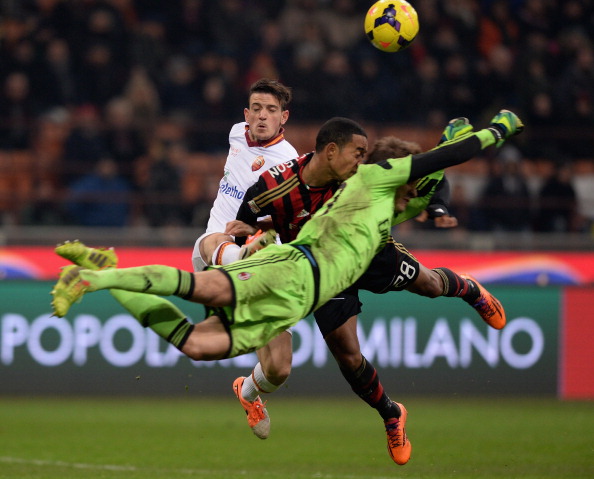MILAN, ITALY - DECEMBER 16: Gabriel and Urby Emanuelson #28 of AC Milan in action during the Serie A match between AC Milan and AS Roma at San Siro Stadium on December 16, 2013 in Milan, Italy. (Photo by Claudio Villa/Getty Images)