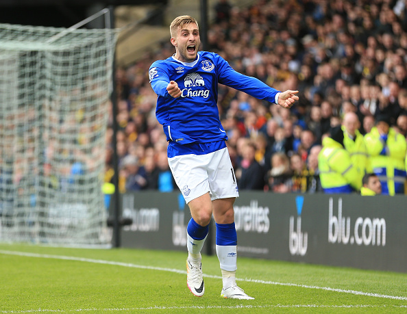 during the Barclays Premier League match between Watford and Everton at Vicarage Road on April 9, 2016 in Watford, England.