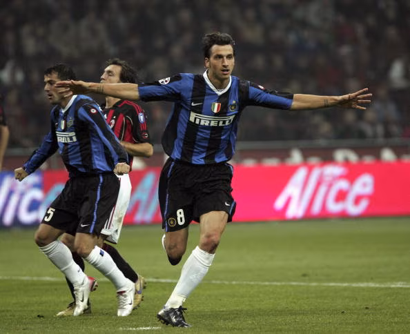 MILAN, ITALY - OCTOBER 28: Zlatan Ibrahimovic of Inter Milan celebrates scoring during the Serie A match between AC Milan and Inter Milan at the San Siro on October 28, 2006 in Milan, Italy. (Photo by New Press/Getty Images)