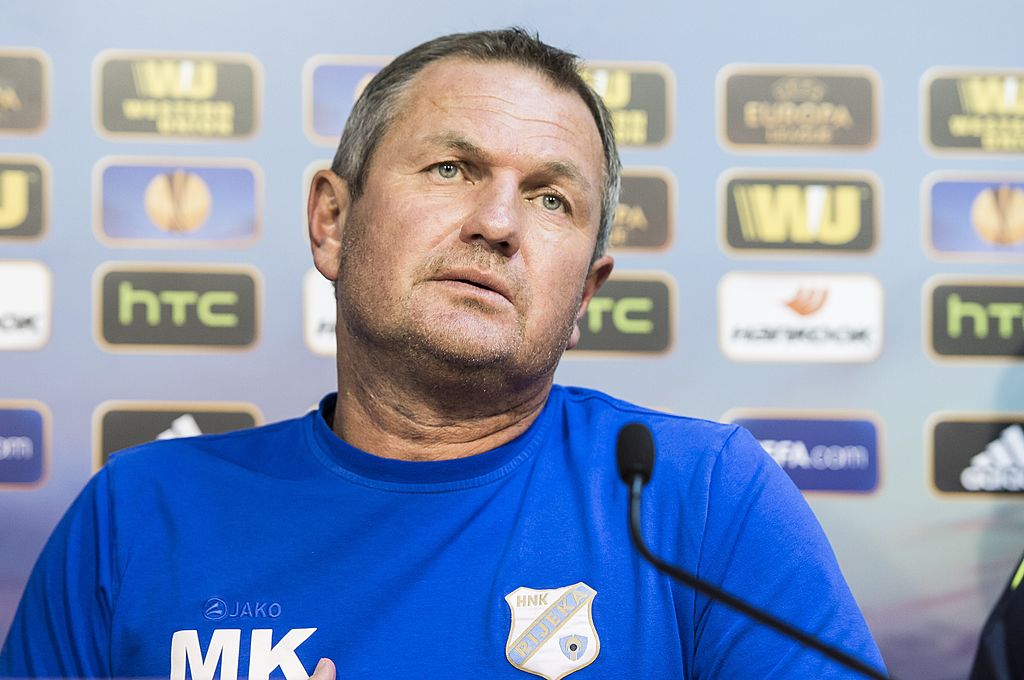 Rijeka's head coach Matjaz Kek gives a press conference in Liege on September 17, 2014, on the eve of the UEFA Europa League football match Standart Liege vs Rijeka. AFP PHOTO / BELGA PHOTO / NICOLAS LAMBERT (Photo credit should read NICOLAS LAMBERT/AFP/Getty Images)