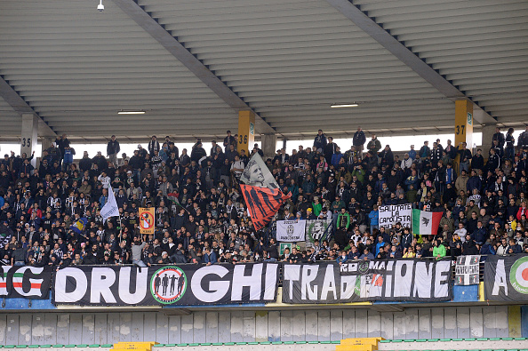 VERONA, ITALY - NOVEMBER 06: Juventus FC fans shows their support during the Serie A match between AC ChievoVerona and Juventus FC at Stadio Marc'Antonio Bentegodi on November 6, 2016 in Verona, Italy. (Photo by Dino Panato/Getty Images)