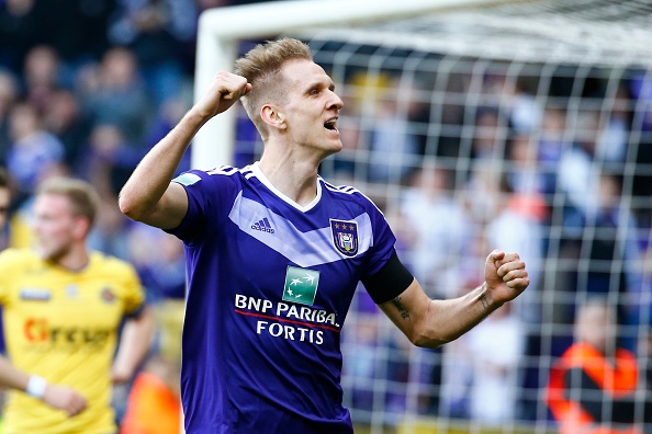 ANDERLECHT, BELGIUM - MARCH 12 : Lukasz Teodorczyk forward of RSC Anderlecht scores and celebrates during the Jupiler Pro League match between RSC Anderlecht and Waasland Beveren on March 12, 2017 in Anderlecht, Belgium, 12/03/2017. ( Photo by Jimmy Bolcina / Photonews via Getty Images)