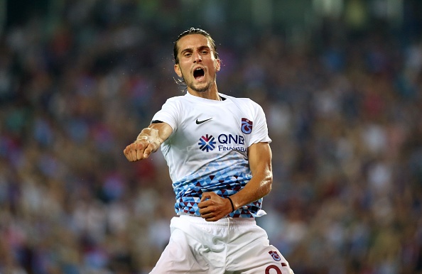 TRABZON, TURKEY - AUGUST 2: Yusuf Yazici of Trabzonspor celebrates after scoring a goal during the football match between Trabzonspor and Deportivo Alaves within the 50th foundation anniversary of Trabzonspor at the Senol Gunes Sport Complex in Trabzon, Turkey on August 2, 2017. (Photo by Hakan Burak Altunoz/Anadolu Agency/Getty Images)