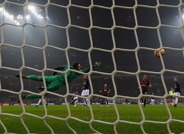 MILAN, ITALY - NOVEMBER 20: Fernandez Suso of AC Milan scores the opening goal (not in the frame) during the Serie A match between AC Milan and FC Internazionale at Stadio Giuseppe Meazza on November 20, 2016 in Milan, Italy. (Photo by Claudio Villa - Inter/Inter via Getty Images)