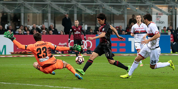 MILAN, ITALY - MARCH 18: Mati Fernandez of AC Milan scores the opening goal during the Serie A match between AC Milan and Genoa CFC at Stadio Giuseppe Meazza on March 18, 2017 in Milan, Italy. (Photo by Emilio Andreoli/Getty Images)