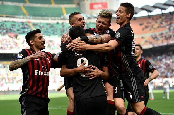 MILAN, ITALY - APRIL 09: Suso of Milan celebrates after scoring the opening goal during the Serie A match between AC Milan and US Citta di Palermo at Stadio Giuseppe Meazza on April 9, 2017 in Milan, Italy. (Photo by Tullio M. Puglia/Getty Images)