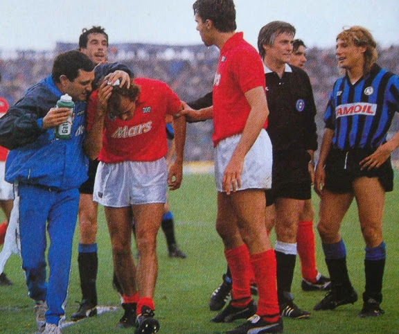 Il dominio lombardo-campano Non parliamo di potere d’acquisto o di capacità di imporsi sui mercati finanziari, bensì della vicenda che, nella stagione ‘89/90, indirizzò lo scudetto verso Napoli. In un campionato tesissimo, con rossoneri e azzurri in ballo sino all’ultima giornata, gran parte della stagione si decide alla 31^ giornata. Il Milan pareggia a Bologna, mentre il Napoli vince 2-0 con l’Atalanta. Una vittoria sonante, in tutti i sensi. Come la monetina che dalle gradinate si abbatte proprio su Alemao, centrocampista partenopeo che, su suggerimento del massaggiatore Carmando, se la prende comoda facendo pensare ad un grave infortunio. La vittoria arriverà con le carte bollate. Svolta nella lotta al vertice, con il Milan che, alla penultima giornata, cadrà nella “fatal Verona”, con dolce epilogo per il Napoli di Alberto Bigon: secondo titolo per i campani.