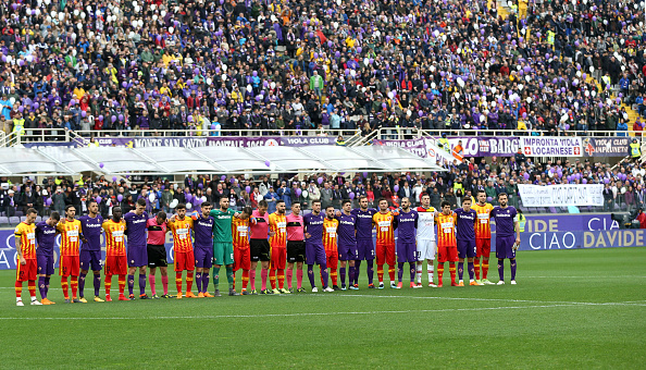 FLORENCE, ITALY - MARCH 11: ACF Fiorentina and Benevento Calcio players watch a minute's silence in memory of Davide Astori during the serie A match between ACF Fiorentina and Benevento Calcio at Stadio Artemio Franchi on March 11, 2018 in Florence, Italy. (Photo by Gabriele Maltinti/Getty Images)
