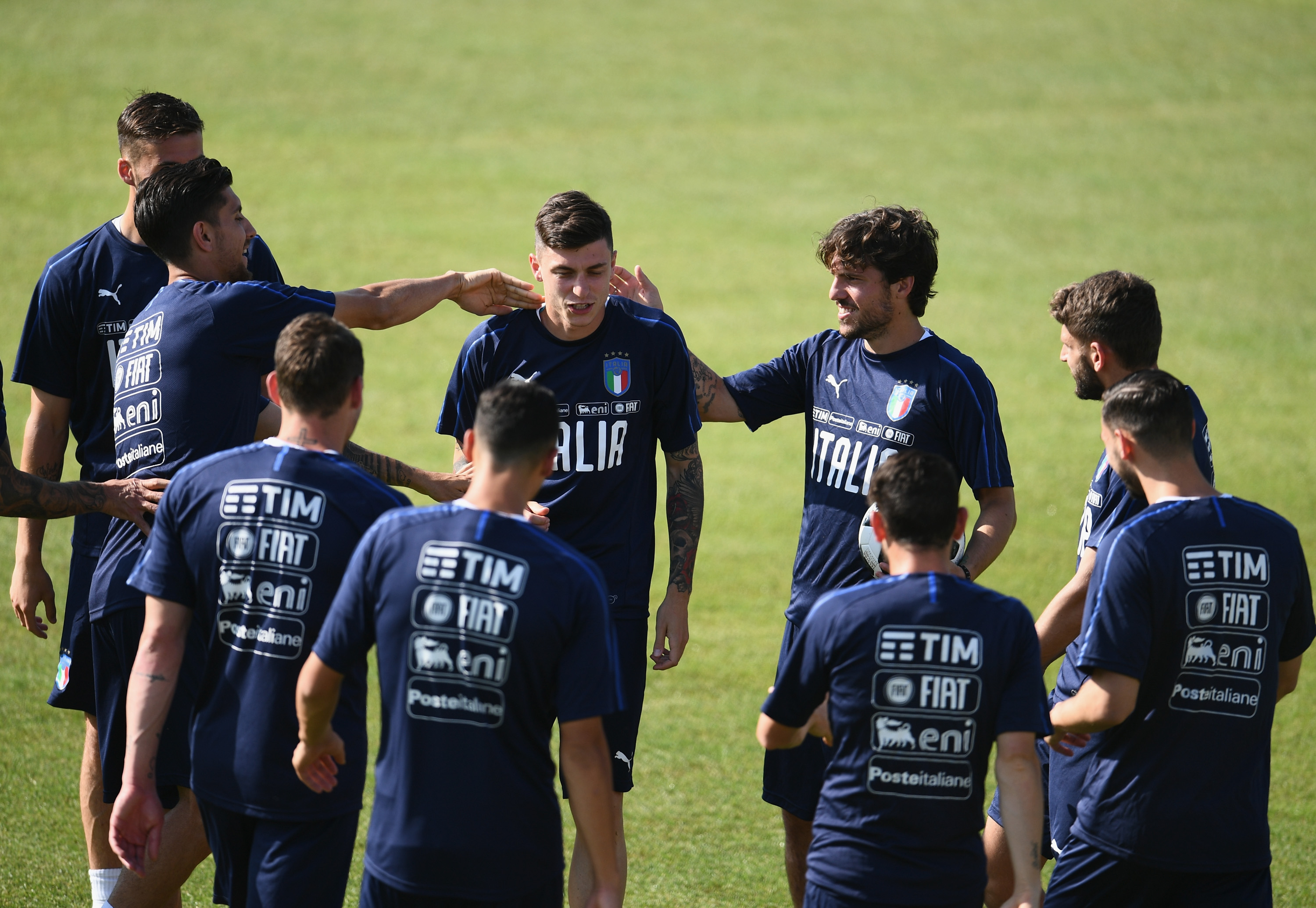 Daniele Baselli, accostato al Milan, scherza coi compagni al ritiro con l'Italia.