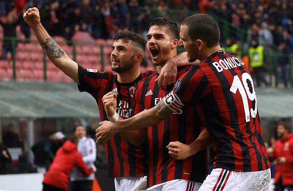 News Milan - L'esultanza di Bonucci con due tra i marcatori di oggi: Cutrone e André Silva.