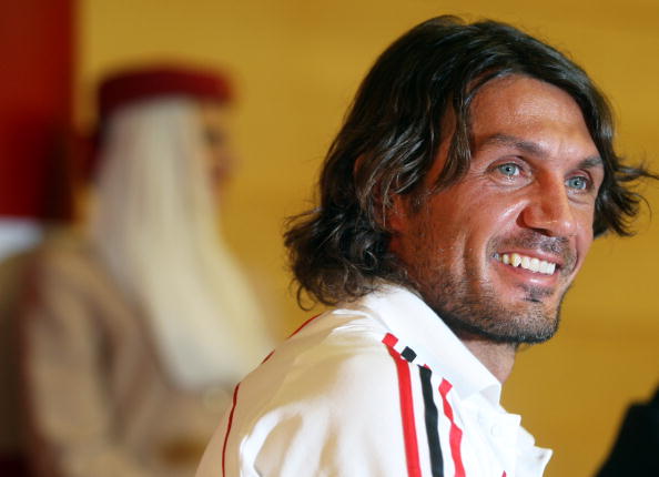 DUBAI, UNITED ARAB EMIRATES - DECEMBER 30: AC Milan Captain Paolo Maldini answers questions at a press conference on December 30, 2008 in Dubai, United Arab Emirates. (Photo by Satish Kumar/Getty Images)