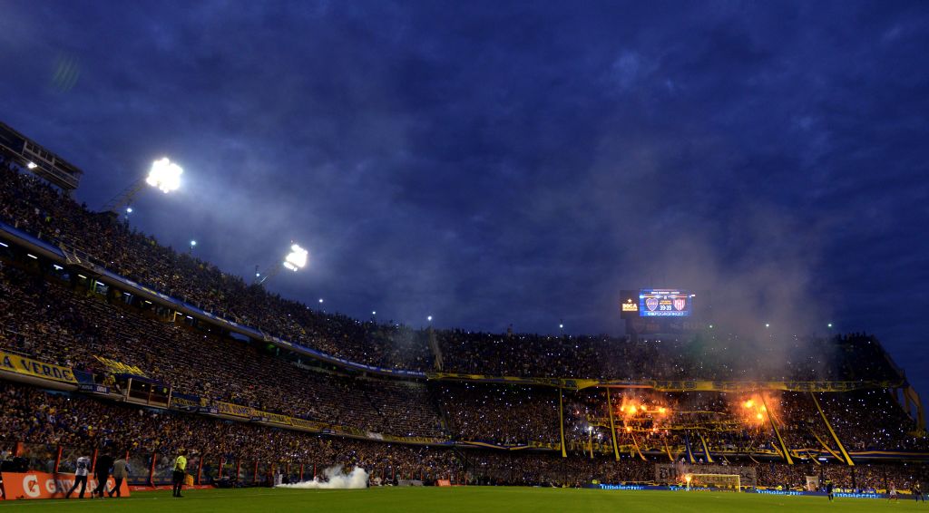 Boca Juniors supporters celebrate after their team defeats Union and wins Argentina's first division football championship at La Bombonera stadium in Buenos Aires, on June 25, 2017. Boca Juniors became champion of Argentina before playing the last match against Union. / AFP PHOTO / ALEJANDRO PAGNI (Photo credit should read ALEJANDRO PAGNI/AFP/Getty Images)