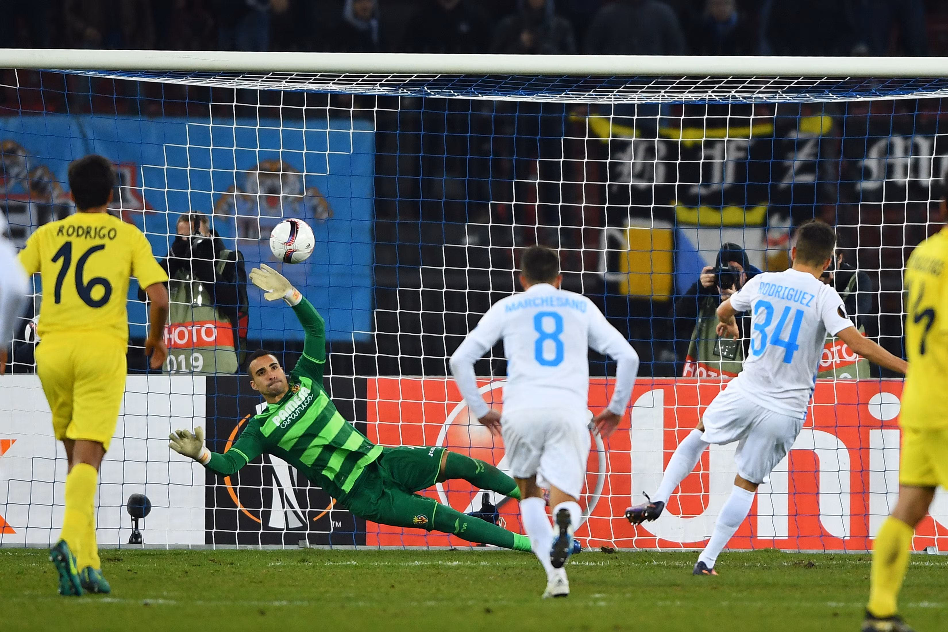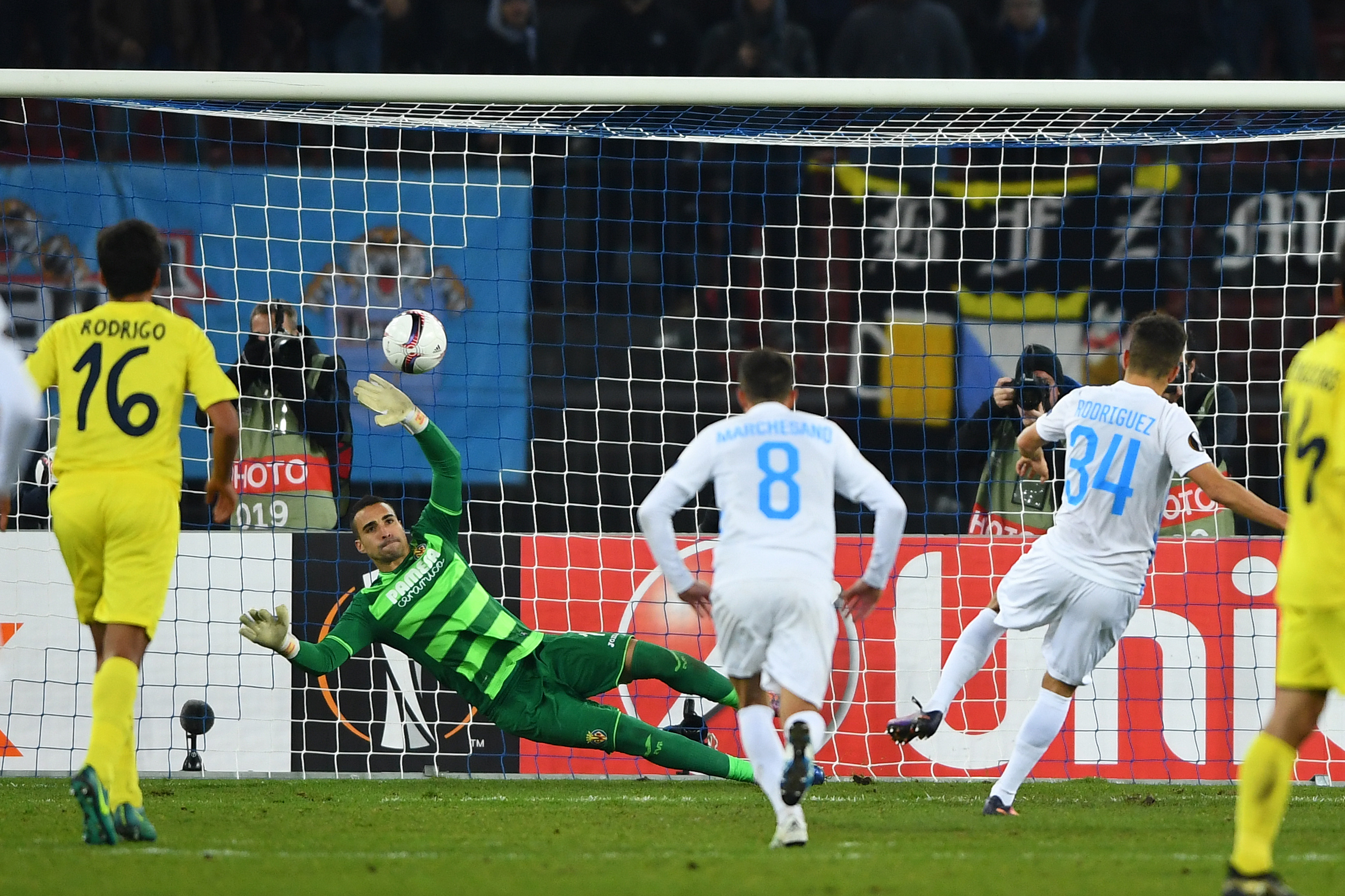 ZURICH, SWITZERLAND - NOVEMBER 24: Roberto Rodriguez of FC Zurich scores his teams first goal 1:1against Sergio Asenjo of Villareal during the during the UEFA Europa League match between FC Zurich and Villarreal CF at Letzigrund Stadium on November 24, 2016 in Zurich. (Photo by Valeriano Di Domenico/Getty Images)