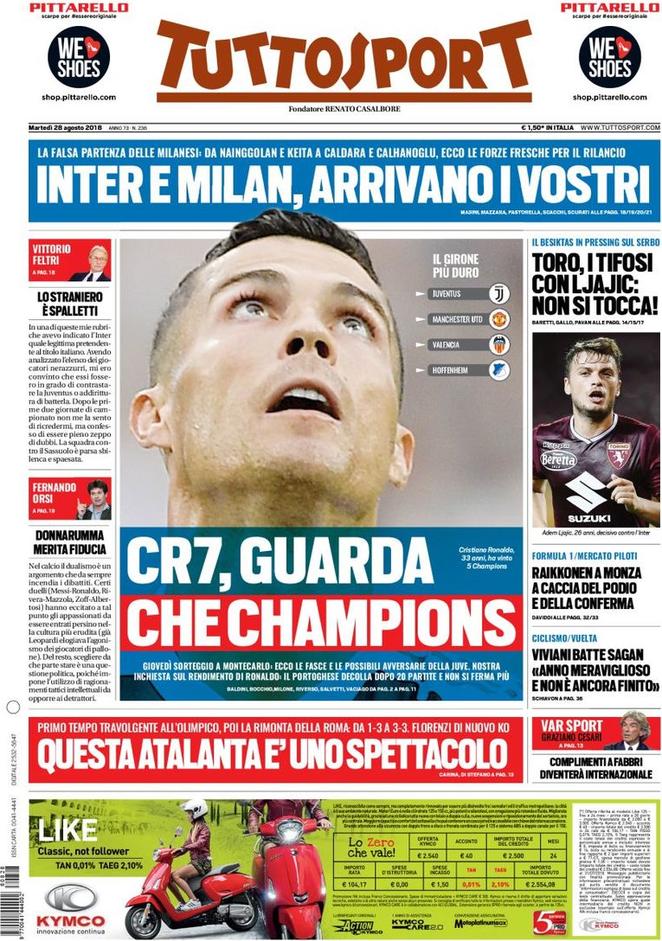 Caldara e Calhanoglu: così il Milan uscirà dal pantano. È questo il taglio alto dei dedicato ai rossoneri nel giornale diretto da Xavier Jacobelli.