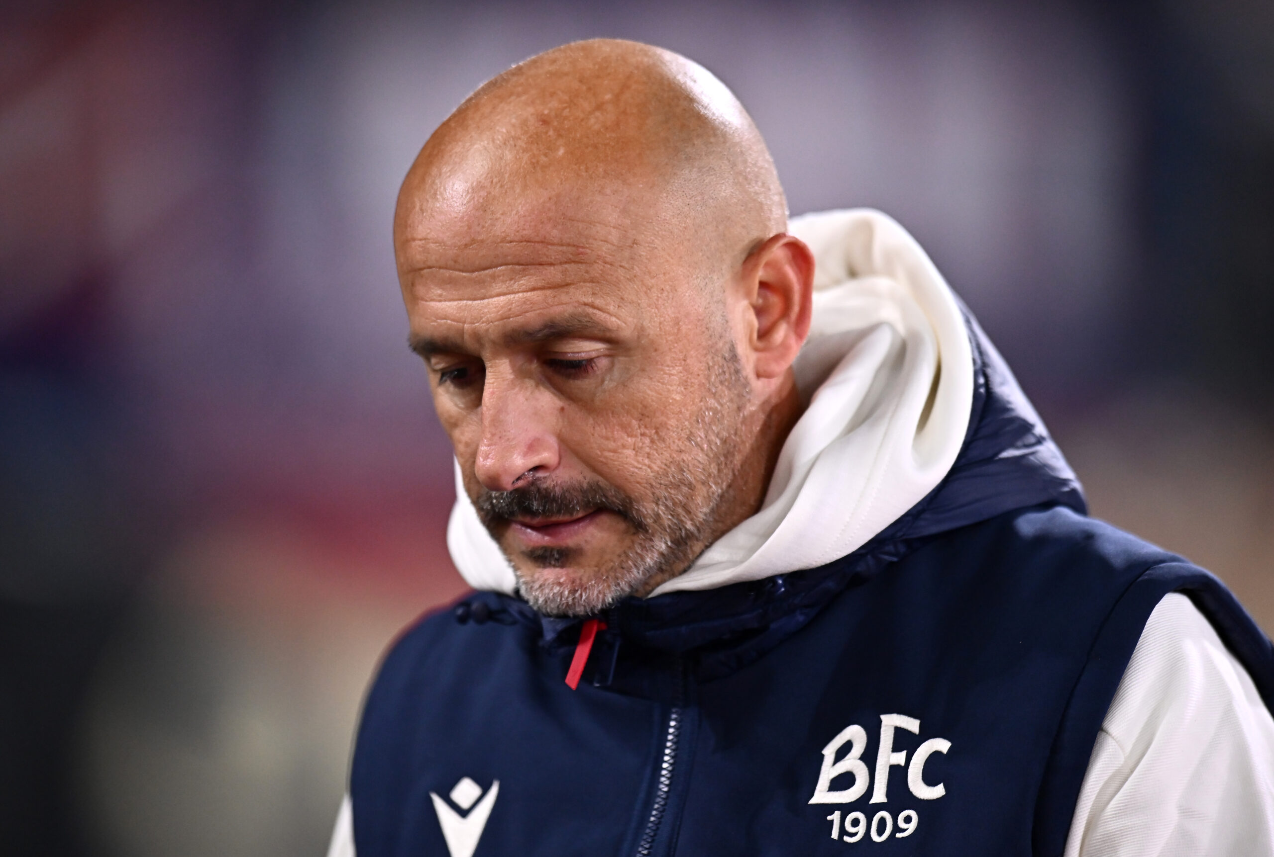 BOLOGNA, ITALY - NOVEMBER 05: Vincenzo Italiano, Head Coach of Bologna, appears dejected at the end of the UEFA Champions League 2024/25 League Phase MD4 match between Bologna FC 1909 and AS Monaco at Stadio Renato Dall'Ara on November 05, 2024 in Bologna, Italy. (Photo by Alessandro Sabattini/Getty Images)