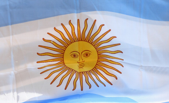 VESPASIANO, BRAZIL - JUNE 20: A detail of the flag of Argentina before a training session at Cidade do Galo on June 20, 2014 in Vespasiano, Brazil. (Photo by Ronald Martinez/Getty Images)