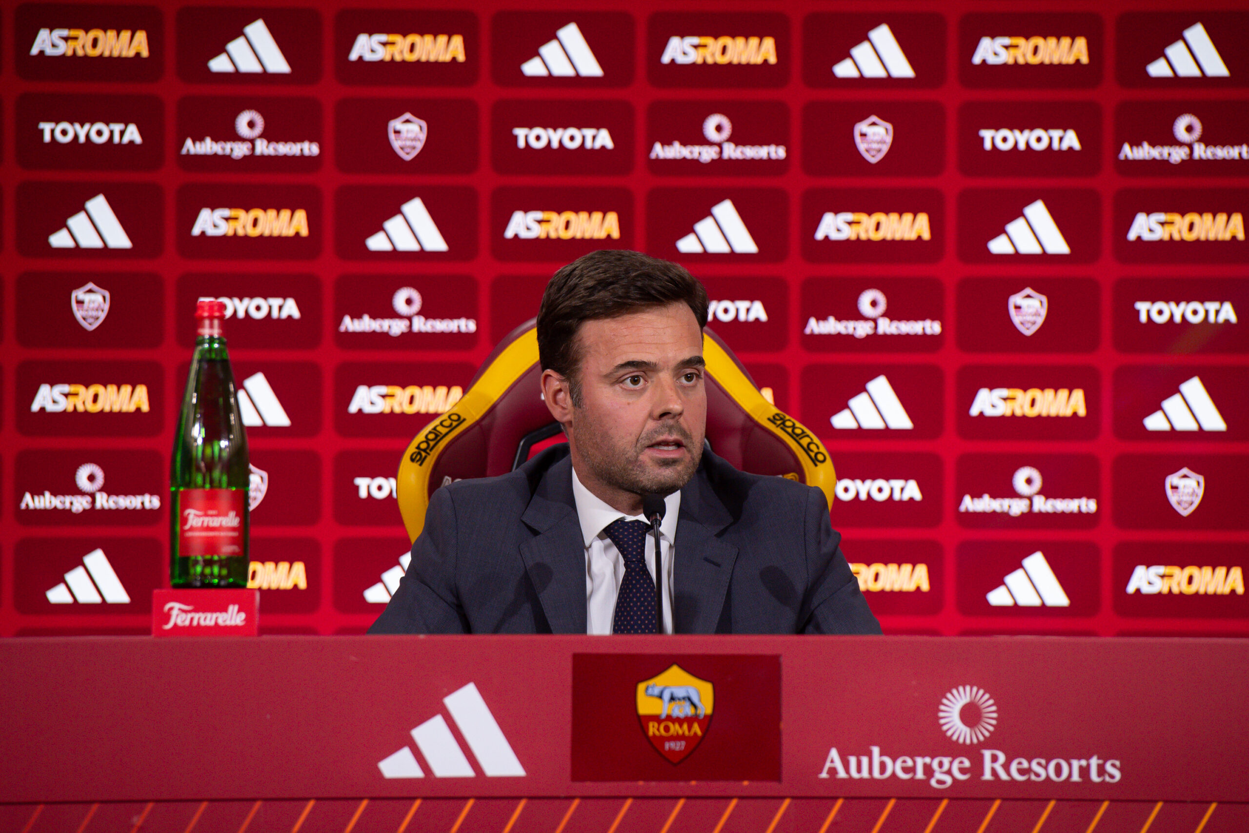 ROME, ITALY - SEPTEMBER 05: AS Roma General Manager Tiago Pinto during a press conference at Centro Sportivo Fulvio Bernardini on September 05, 2023 in Rome, Italy. (Photo by Fabio Rossi/AS Roma via Getty Images)