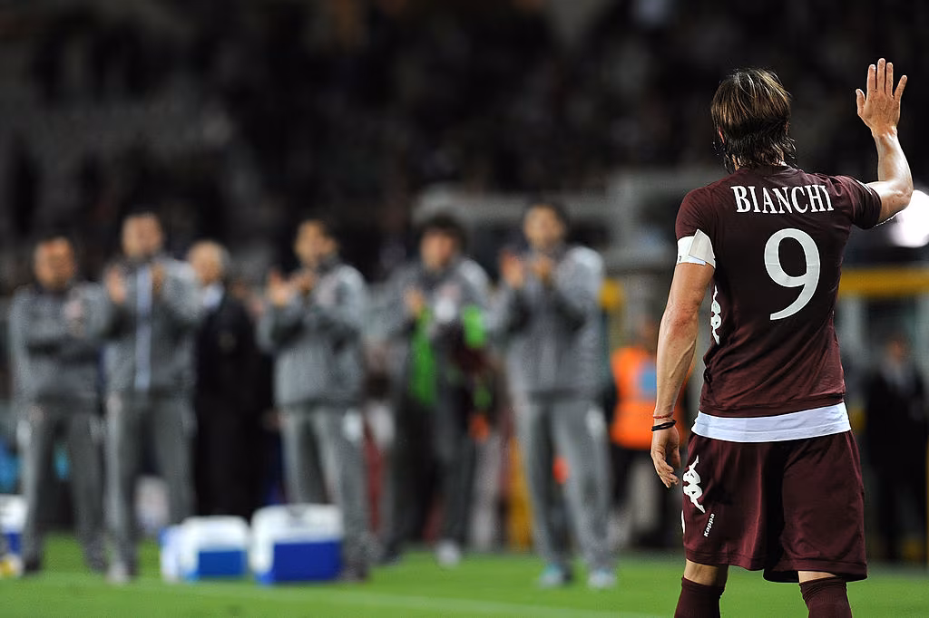 TURIN, ITALY - MAY 19: Rolando Bianchi of Torino FC salutes the crowd at the end of the Serie A match between Torino FC and Calcio Catania at Stadio Olimpico di Torino on May 19, 2013 in Turin, Italy. (Photo by Valerio Pennicino/Getty Images)