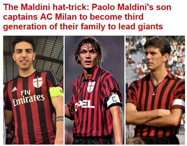 DALL’INGHILTERRA – Il Daily Mail ha voluto raccontare l’episodio. Nonno, padre e figlio tutti con la fascia da capitano del Milan, e ancora deve crescere il fratellino Daniel di 14 anni che nell’ultima partita è andato in goal. Il quotidiano inglese ha voluto anche sottolineare come la mitica maglia numero 3 sia stata ritirata e di come potrebbe tornare in auge una volta che Christian farà il salto in prima squadra.