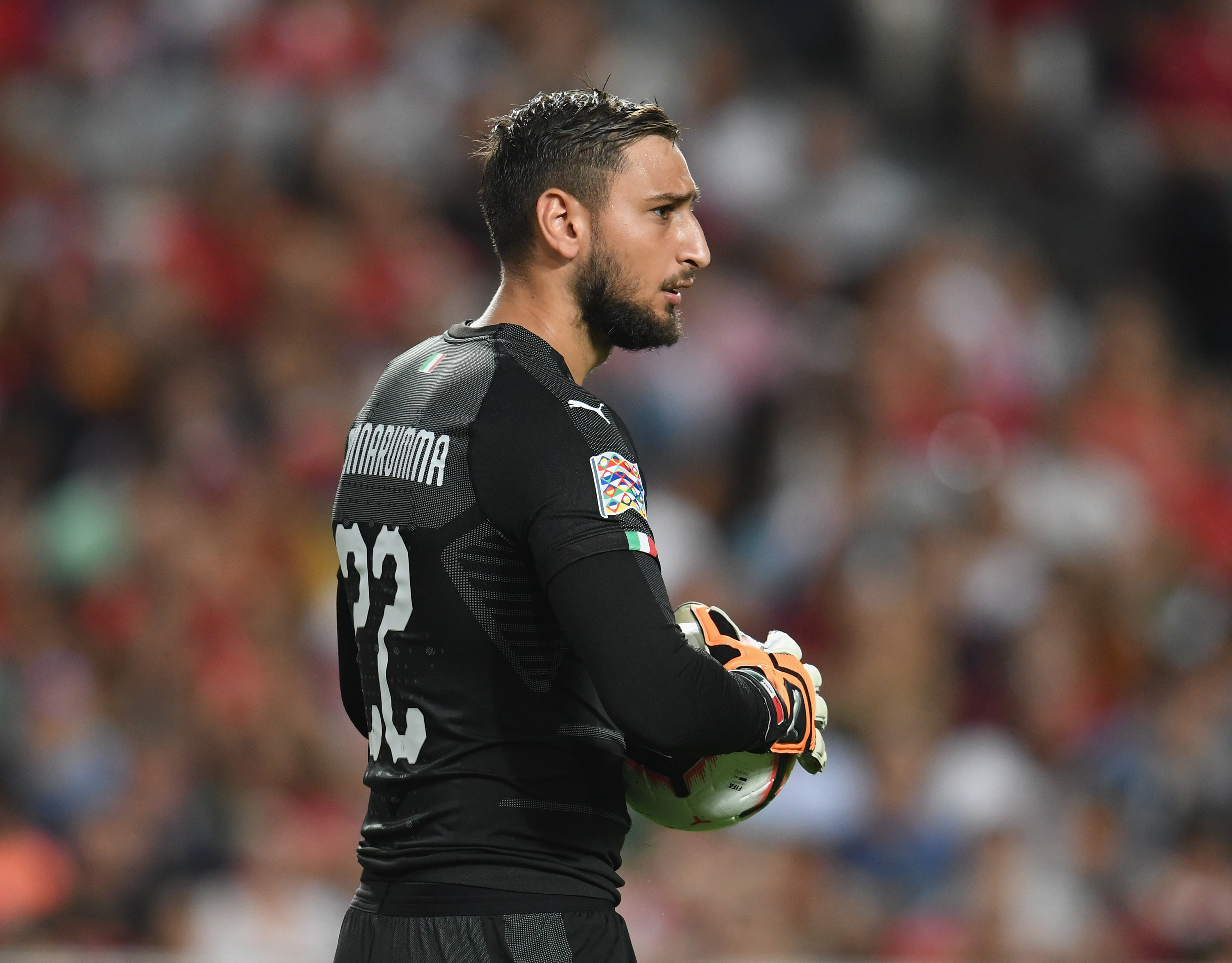 Il portiere rossonero Donnarumma con la maglia della Nazionale Italiana.