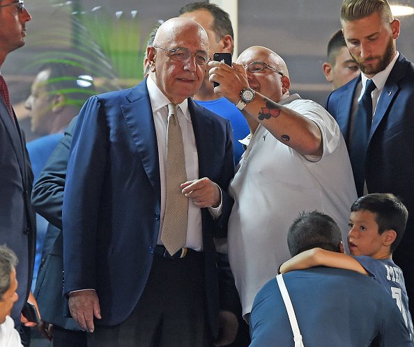 NAPLES, ITALY - AUGUST 27: Adriano Galliani the Amministrator of AC Milan and fans looks on prior to the Serie A match between SSC Napoli and AC Milan at Stadio San Paolo on August 27, 2016 in Naples, Italy. (Photo by Francesco Pecoraro/Getty Images)