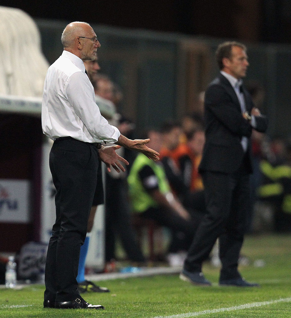 REGGIO CALABRIA, ITALY - MAY 26: Luigi Cagni head coach of Vicenza reacts during the Serie B match between Reggina Calcio and Vicenza Calcio at Stadio Oreste Granillo on May 26, 2012 in Reggio Calabria, Italy. (Photo by Maurizio Lagana/Getty Images)