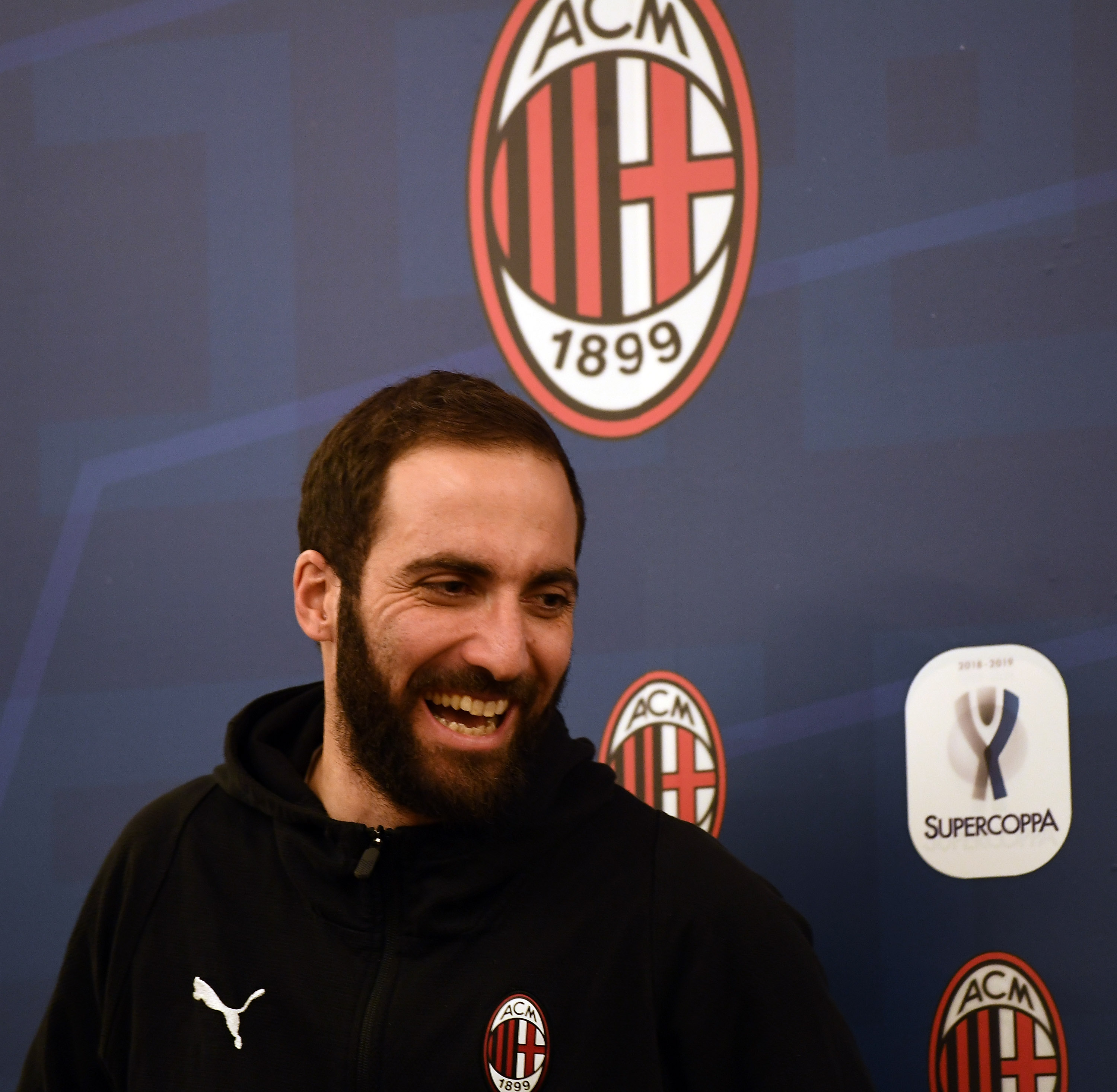 JEDDAH, SAUDI ARABIA - JANUARY 13: Gonzalo Higuain of AC Milan looks on during AC Milan Sponsor and Greet Events on January 13, 2019 in Jeddah, Saudi Arabia. (Photo by Claudio Villa/Getty Images for Lega Serie A)