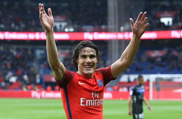 PARIS, FRANCE - MAY 6: Edinson Cavani of PSG reacts during the French Ligue 1 match between Paris Saint-Germain (PSG) and SC Bastia at Parc des Princes stadium on May 6, 2017 in Paris, France. (Photo by Jean Catuffe/Getty Images)